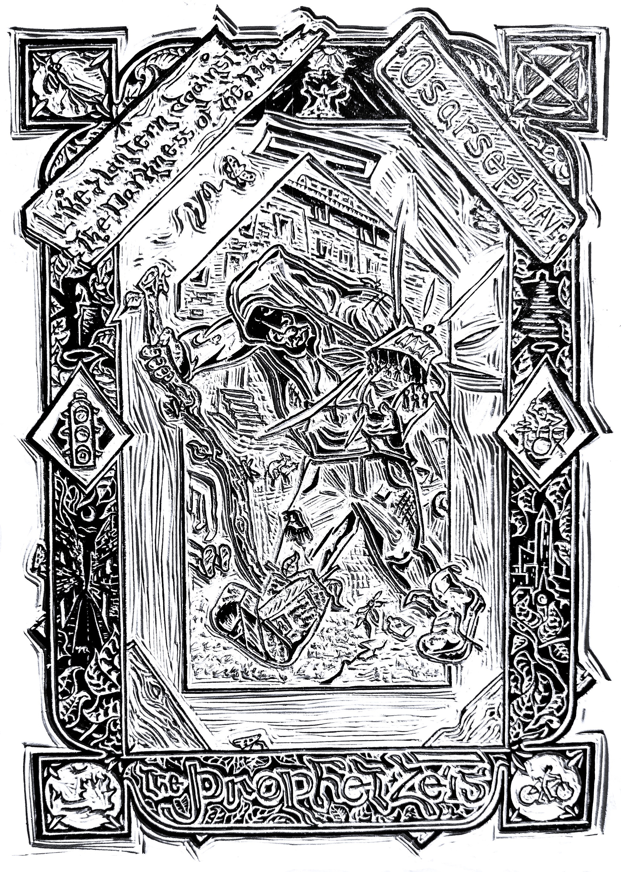 Where ya’lls bathroom!? —Throwing back his tattered hood we see that it is indeed Zeis, trailing this retinue of Lantern-flies—as he enters St. Francis on this holiest of Sunday mornings, and proceeds to declare his intention to take a piss..